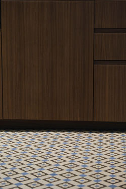 We hebben de karaktervolle details behouden en de ruimte getransformeerd naar een tijdloze, luxe badkamer. De vloer in parket is prachtig afgestemd op de rest van de woning. De strakke, donkerblauwe metrotegels aan de wand geven het geheel een eigentijdse twist. We voorzagen de badkamer van een bad.