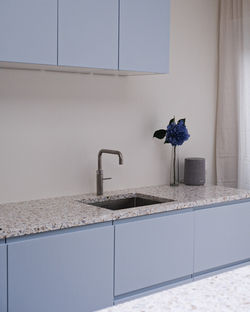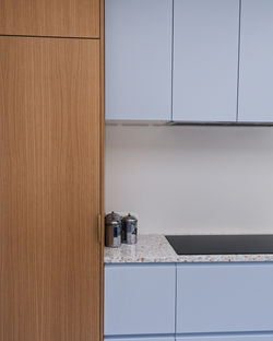 De renovatie van de uitbouw met een nieuwe keuken in een rijhuis in Antwerpen combineert op slimme wijze klantgerichte doe-het-zelf oplossingen met IKEA-elementen. De basis van de keuken komt van IKEA, maar is volledig gepersonaliseerd. De standaard IKEA-keuken is voorzien van alternatieve fronten, wat de keuken een unieke uitstraling geeft. Het werkblad is gemaakt van natuursteen terrazzo, wat niet alleen duurzaamheid biedt maar ook een verfijnde, stijlvolle uitstraling. De kleurkeuze van babyblauw gecombineerd met eikfineer zorgt voor een warme en speelse mix van moderne en natuurlijke elementen. De uitbouw is ontworpen met een focus op natuurlijk licht. Twee grote lichtkoepels zorgen voor maximale lichtinval, wat de keuken helder en uitnodigend maakt. Dit is vooral belangrijk in rijhuizen waar natuurlijk licht vaak een uitdaging kan zijn.